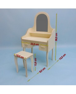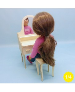 Coiffeuse avec tabouret miniature en bois brut en kit pour poupées 1/4ème (personnage adulte de 40 à 50 cm)